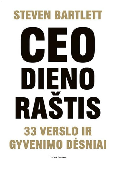 Informacija Pavadinimas originalo kalba: The Diary of a CEO: The 33 Laws of Business & Life Autorius: Steven Bartlett Leidėjas: Baltos lankos Išleidimo metai: 2024 Knygos puslapių skaičius: 400 Formatas: 14x21, kieti viršeliai ISBN ar kodas: 9786094799976 Vertėjas: Mantas Tamulevičius Iš kokios kalbos versta: anglų