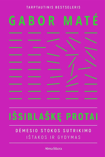 Informacija Pavadinimas originalo kalba: Scattered Minds: The Origins and Healing of Attention Deficit Disorder Autorius: Gabor Maté Leidėjas: Alma littera Išleidimo metai: 2025 Knygos puslapių skaičius: 384 Formatas: 14x21, kieti viršeliai ISBN ar kodas: 9786090166109 Vertėjas: Inga Būdvytytė Iš kokios kalbos versta: anglų Žanras: Protas, intelektas, atmintis