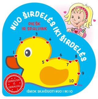 Viens širdelė, du širdelė, jas sujungus gaunasi antelė! Kad žinotum, kokia seka širdeles sujungti, jos pažymėtos skaičiais nuo vieno iki dešimties. Taip ne tik smagiai žaisi, bet ir mokysies skaičiuoti! Skaičių sekos gali mokytis ir vedžiodamas pirštuku rausvų širdelių grandinėlę, juosiančią piešinius – teisingu keliu tave nuves rodyklės. Dailioje širdies formos knygelėje net 24 didelio formato ryškių linijų piešiniai ypač tinka mažoms neįgudusioms rankelėms.