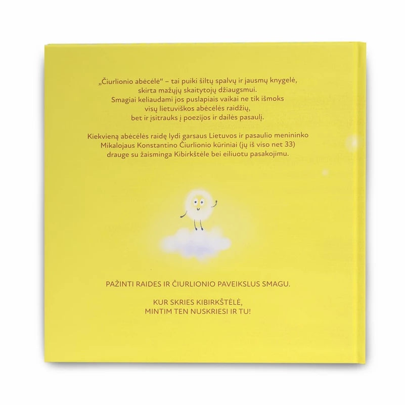 „Čiurlionio abėcėlė“ – tai puiki šiltų spalvų ir jausmų knygelė, skirta mažųjų skaitytojų džiaugsmui. Smagiai keliaudami jos puslapiais vaikai ne tik išmoks visų lietuviškos abėcėlės raidžių, bet ir įsitrauks į poezijos ir dailės pasaulį. Kiekvieną abėcėlės raidę lydi garsaus Lietuvos ir pasaulio menininko Mikalojaus Konstantino Čiurlionio kūriniai (jų iš viso net 33) drauge su žaisminga Kibirkštėle bei eiliuotu pasakojimu.