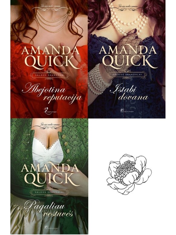 Trijų knygų serija Saldūs skandalai Amanda Quick. Abejotina reputacija. Pirma knyga Nuo tos akimirkos, kai nepažįstamasis įsiveržė į jos antikvarinių dirbinių parduotuvę Romoje, Lavinija Leik žinojo: jis atneš tik rūpesčių. Jis sakėsi persekiojantis žudiką. Prisiekinėjo mėginantis ją išgelbėti. Tačiau Lavinija buvo įsitikinusi, jog pono Tobijo Marčo vienintelis tikslas ‒ ją sunaikinti. Kai savamokslis seklys nusekė įkandin jos į Angliją, Lavinija prisiekė, kad ras būdą, kaip su juo atsiteisti. Ji netikėjo pono Marčo žodžiais, esą jis pasamdytas sekti galingą piktadarį. Ir kaip tik tada, kai tyrimas įsibėgėjo, jį apsunkino ši visiškai nevaldoma, erzinanti ir netgi šiek tiek įtartina moteris. Lavinija tikrai nesitikėjo, kad jie susitiks dar kartą, bus priversti bendradarbiauti šokiruojančiomis aplinkybėmis arba kad jų audringi nesutarimai įžiebs deginantį geismą, tokį pat didelį kaip ir pavojus, su kuriuo jie susidūrė.
