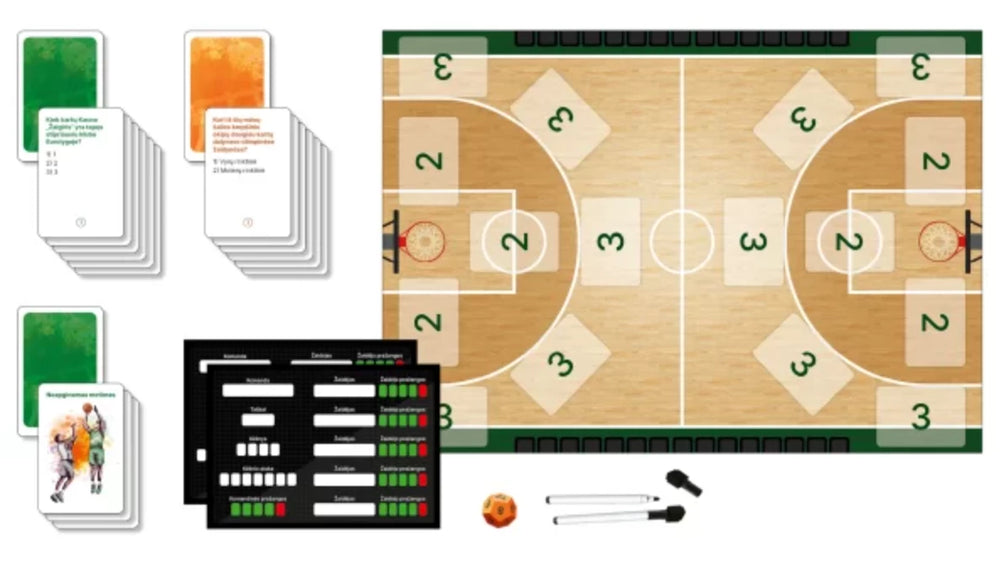 Rekomenduojamas amžius: 12+ Žaidėjų skaičius: 2–10 Stalo žaidimas „Krepšinio fanas“ meta iššūkį visiems krepšinio entuziastams! Suburkite dvi komandas ir atraskite azartišką krepšinio aikštelę ant stalo. Meskite kauliuką, atsakykite į klausimus. Taiklumo ir žinių kova parodys, kuri komanda yra stipresnė.